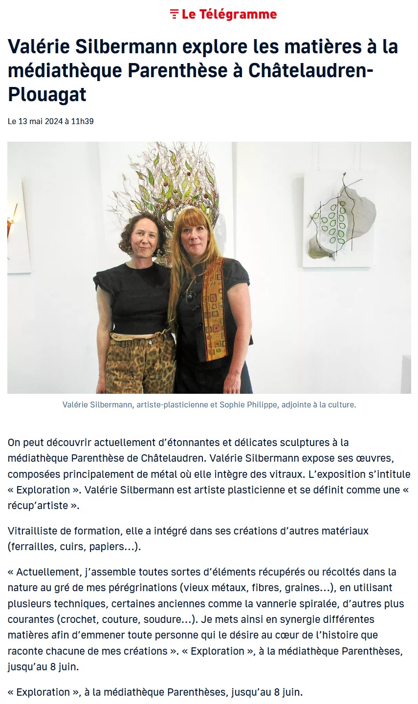 Pour plus d'infos : https://www.letelegramme.fr/cotes-d-armor/chatelaudren-plouagat-22170/valerie-silbermann-explore-les-matieres-a-la-mediatheque-parenthese-a-chatelaudren-plouagat-6582966.php